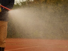 Bei trockenem Boden bitte den gesamten Tennisplatz (bis zum Zaun) tief bewässern.